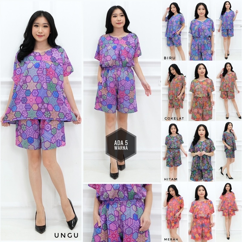 Bahan katun ukuran all size lingkar dada 110 cm model baby doll stelan pendek .